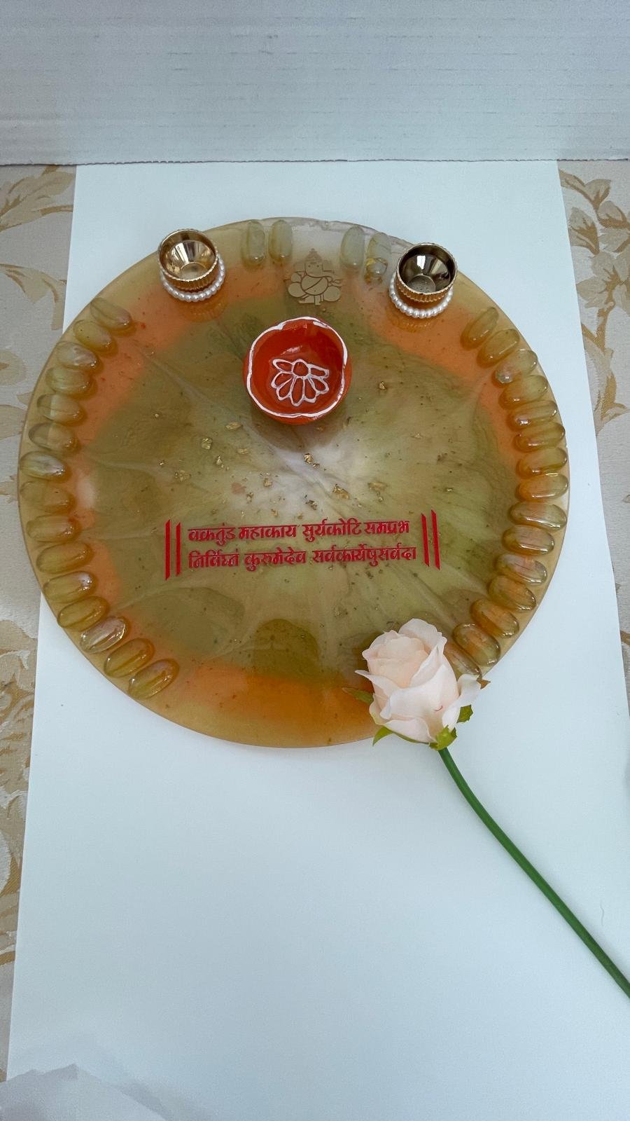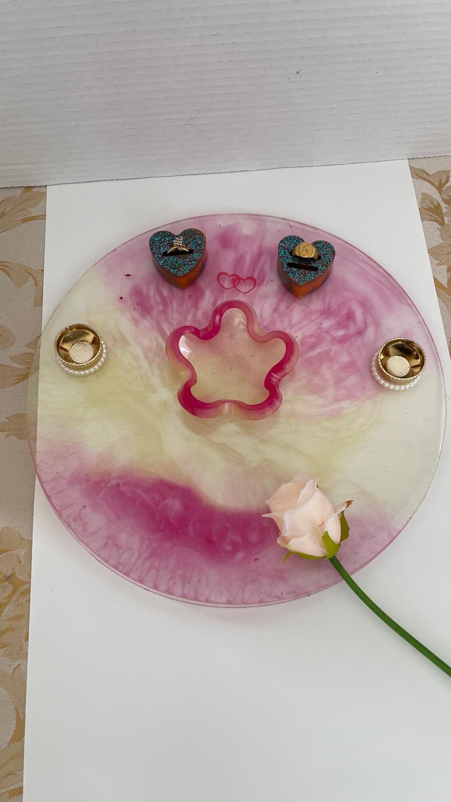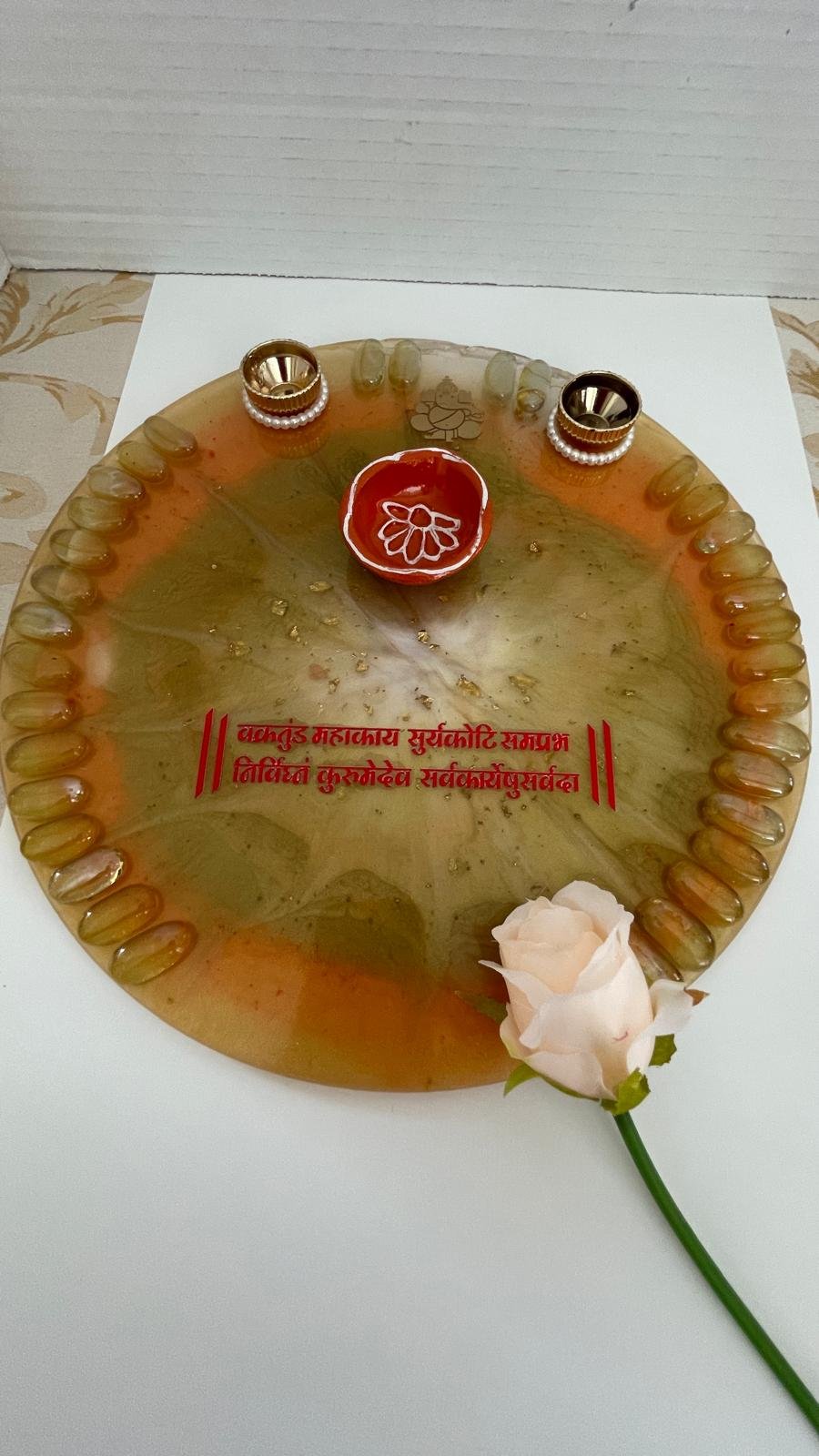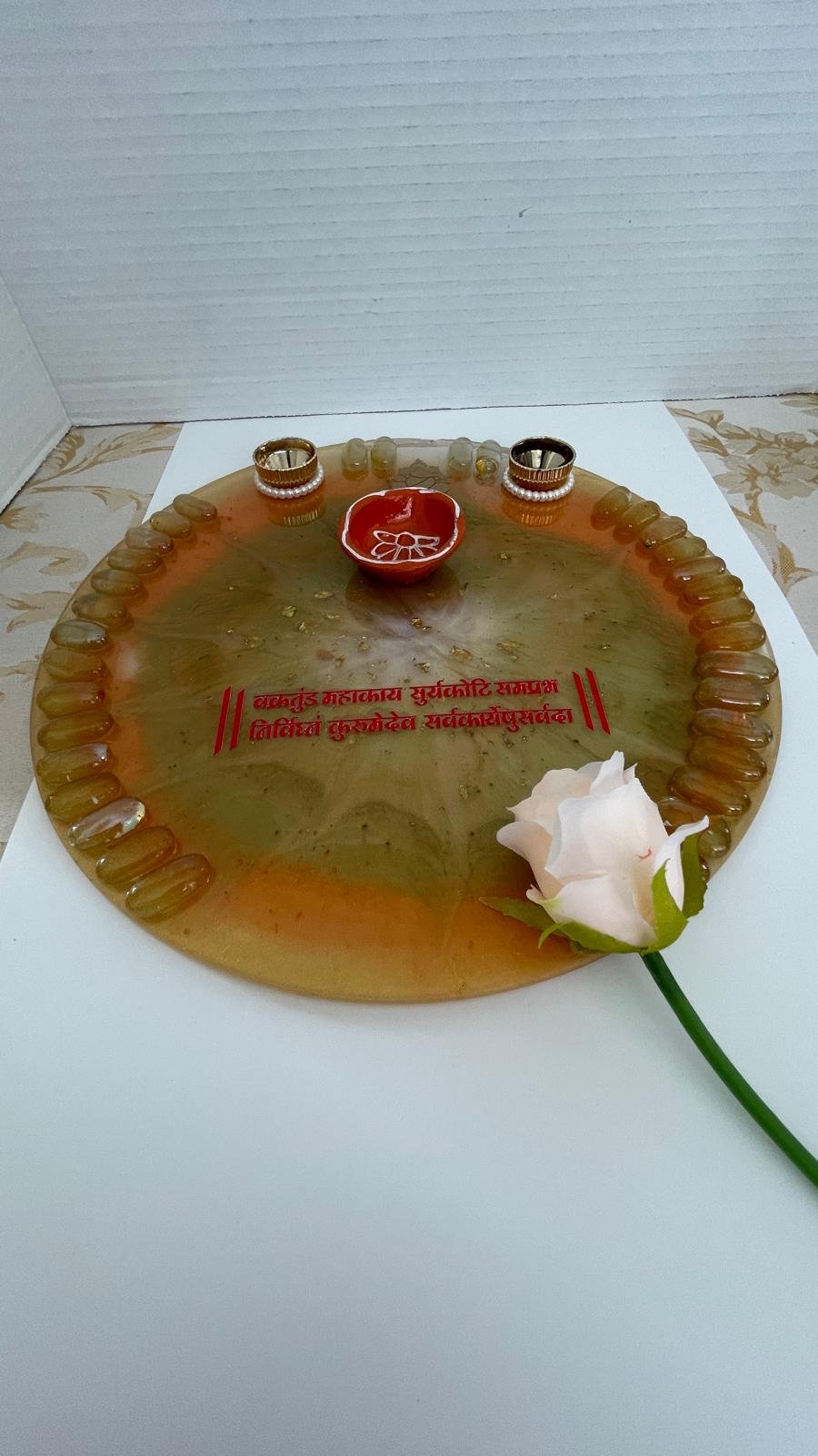 Bring elegance to your traditions with these custom-made resin trays. Designed for durability and a high-end aesthetic, these sets are perfect for personal use during ceremonies or as thoughtful gifts for Diwali, housewarmings, and weddings.