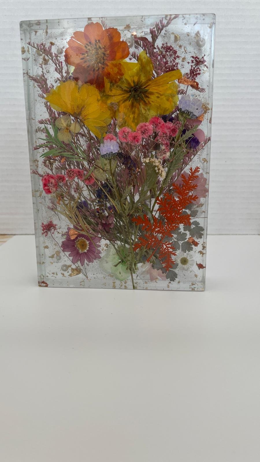 Don’t let your special bouquets fade away. Our Pressed Flower Preservation service allows you to turn sentimental blooms into a stunning piece of home decor. Whether it’s from a wedding, anniversary, or a significant milestone, we hand-preserve your flowers in a high-gloss, glass-like resin that keeps them vibrant for years to come.